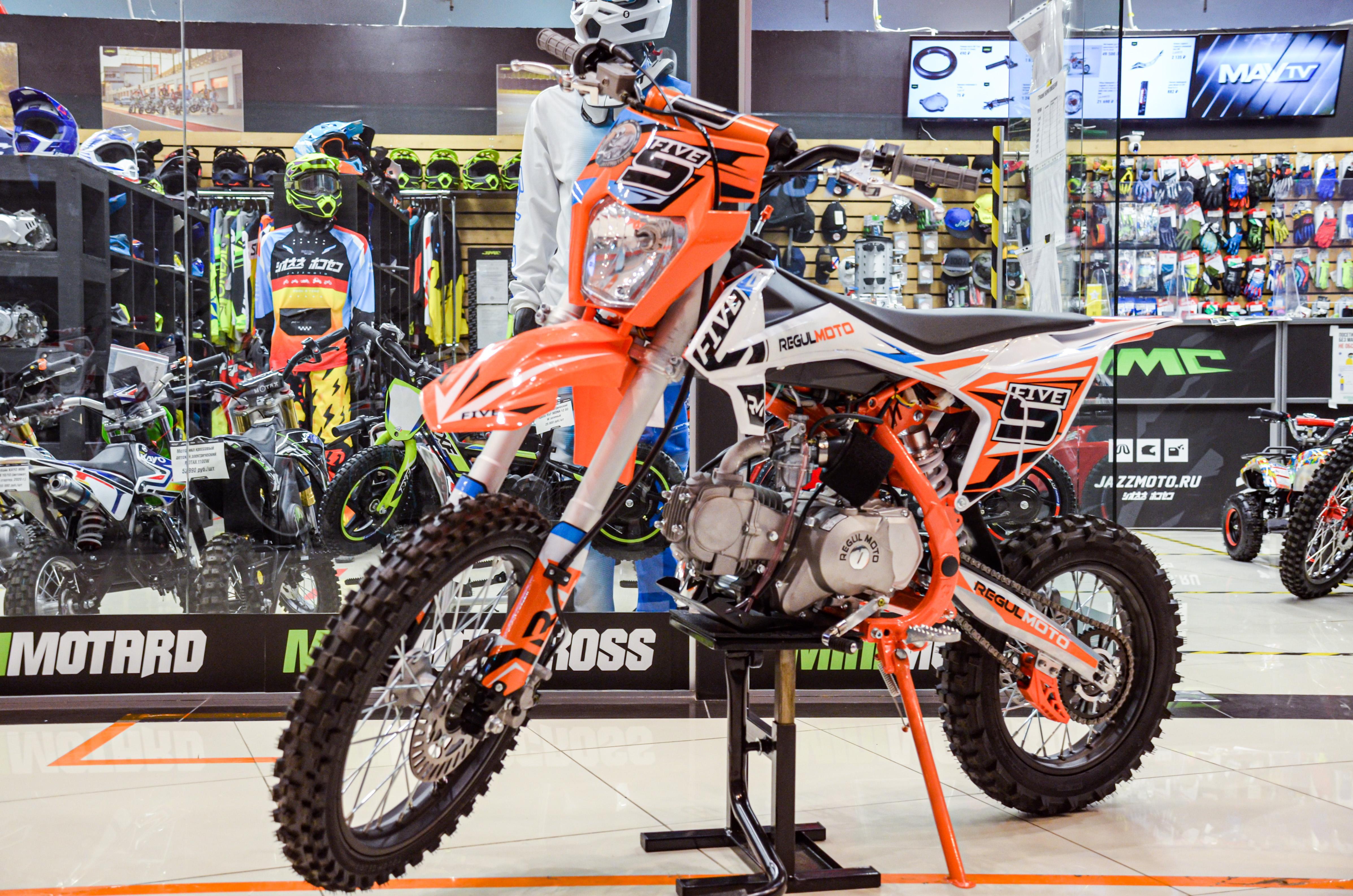 Питбайк Regulmoto Five YX125EA New 2020 г. построен на совершенной новой усиленной хребтовой раме, которая применяется Американской компании PitsterPro, что является залогом надежности и грамотной геометрии. Большая часть рамы проварена на конвейерной линии сварочными автоматами. Вся электропроводка оснащена водонепроницаемыми разъёмами. Питбайк  в пластиковом обвесе типа KTM 65 2019г.